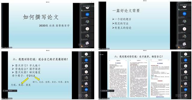习近平总书记在党的二十大会议中强调大力实施科教兴国战略,加快建设高质量教育体系,全面提高人才自主培养质量,这无疑是对研究生的科研能力提出了更高的要求。为激励师范学子提升科研素养、开拓研究生学术视野、激发创新思维,促进学术交流,研分会于2022年10月22日16:00召开本学期第一次学术沙龙。此次学术沙龙邀请到研分会执行主席向燕及主席团黄卢涛同学进行论文写作经验分享,师范学院全体研究生通过腾讯会议线上参与。
