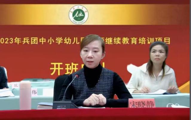 开班典礼上,兵团教育科学研究院副院长宋晓静强调,教师是教育工作的中坚力量,教师的思想政治状况具有极强的示范性,要坚持教育者先受教育,让教师更好地担当学生健康成长的指导者和引路人的责任,在继续教育培训中要把教师的思想政治建设放在首位,进一步贯彻落实党的二十大会议精神,加强理想信念教育,深入学习习近平新时代中国特色社会主义思想,贯彻落实习近平总书记关于教育的重要论述。