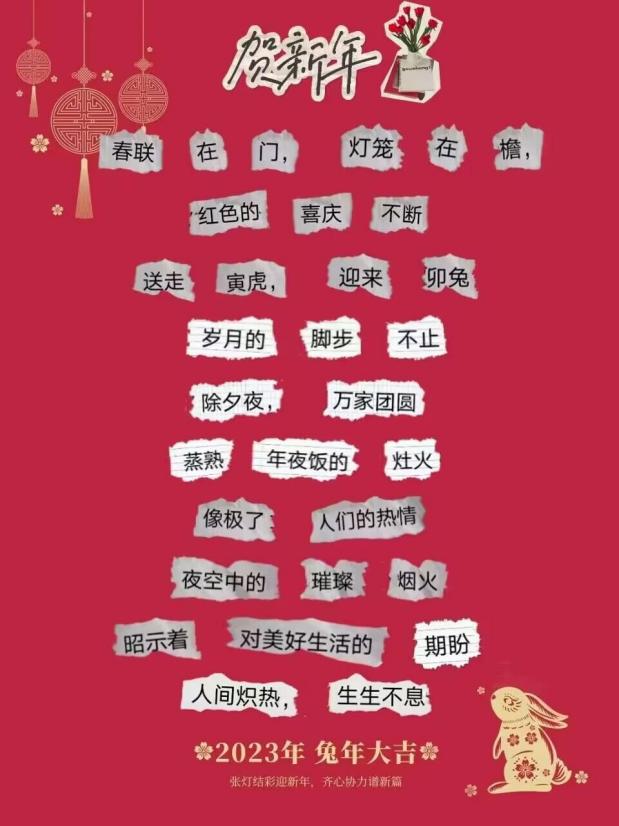 辞旧迎新之际我们一起回顾2022、展望2023。师范学院团委、红烛舞团、红烛青年志愿者协会共同组织了“青春献礼新时代 踔厉奋进新征程”主题系列活动,大家以征文的形式讲述自己的假期生活、写下假期难忘的经历;用一张张照片记录过去的一年,制作出属于自己的2022;用拼贴诗的形式表达了大家的新年祝福、目标和愿望,用实际行动诠释出新年寄语。