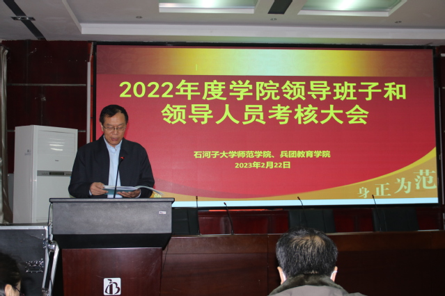 2023年2月22日上午10点,师范学院、兵团教育学院召开2022年度院领导班子和领导人员考核大会。会议由师范学院党委书记、兵团教育学院院长刘政江主持,全院教职工参会。校党委常委、组织部部长赵军,学校精神文明办公室主任、党委宣传部副部长梁红军,纪委张向霞和组织部李志飞到场考核。