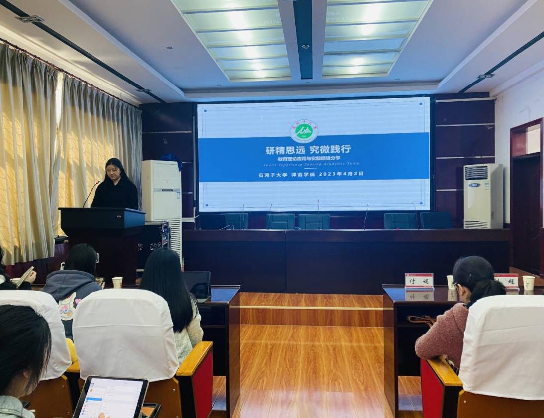 2021级的研究生耿莉雪已发表一篇核心期刊,对于论文的撰写具有一定的经验。她结合自身经验,以“教育理论在学术写作中的应用”为题,从题目的拟定、到理论的选择与应用,全面系统地为我们展现了如何将教育理论应用于写作的行文过程,并分享了实用可操作的写作心得。
