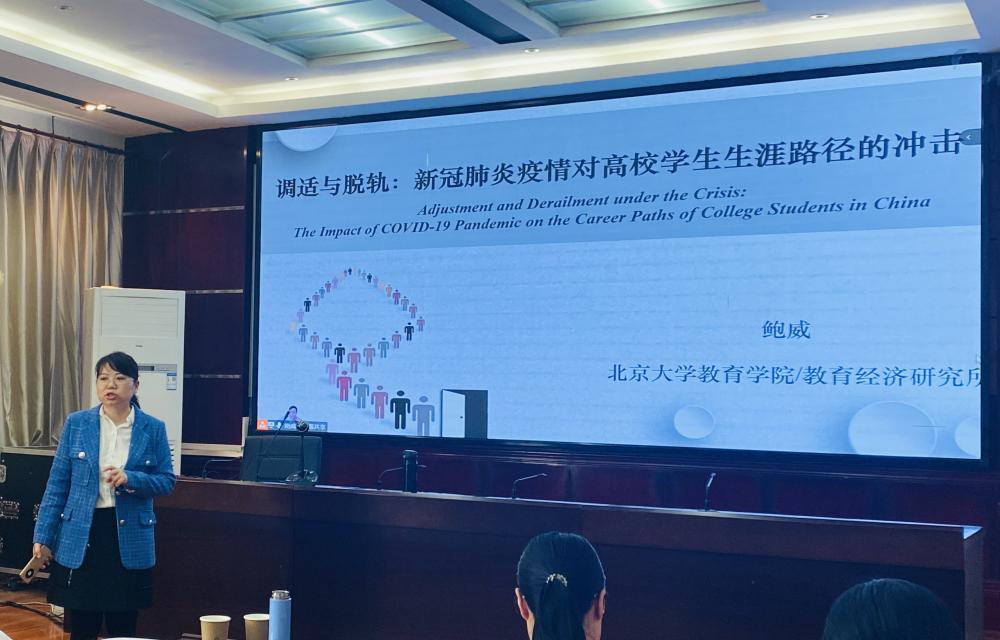 为了引导学生树立正确的就业价值观,坚持为党育人、为国育才,培养担当民族复兴大任的时代新人,4月14日16:00,2023年第一场“西部高层教育论坛”学术讲座于师范楼103学术报告厅成功举办。讲座邀请到北京大学教育学院/教育经济研究所研究员、博士生导师鲍威担任主讲人,开展了以“调试与脱轨:新冠疫情对高校学生生涯发展路径的冲击效应”为主题的学术讲座。讲座由我院教育系主任付娟副教授担任主持人,学院教育学教研室全体教师和在校研究生积极参与。