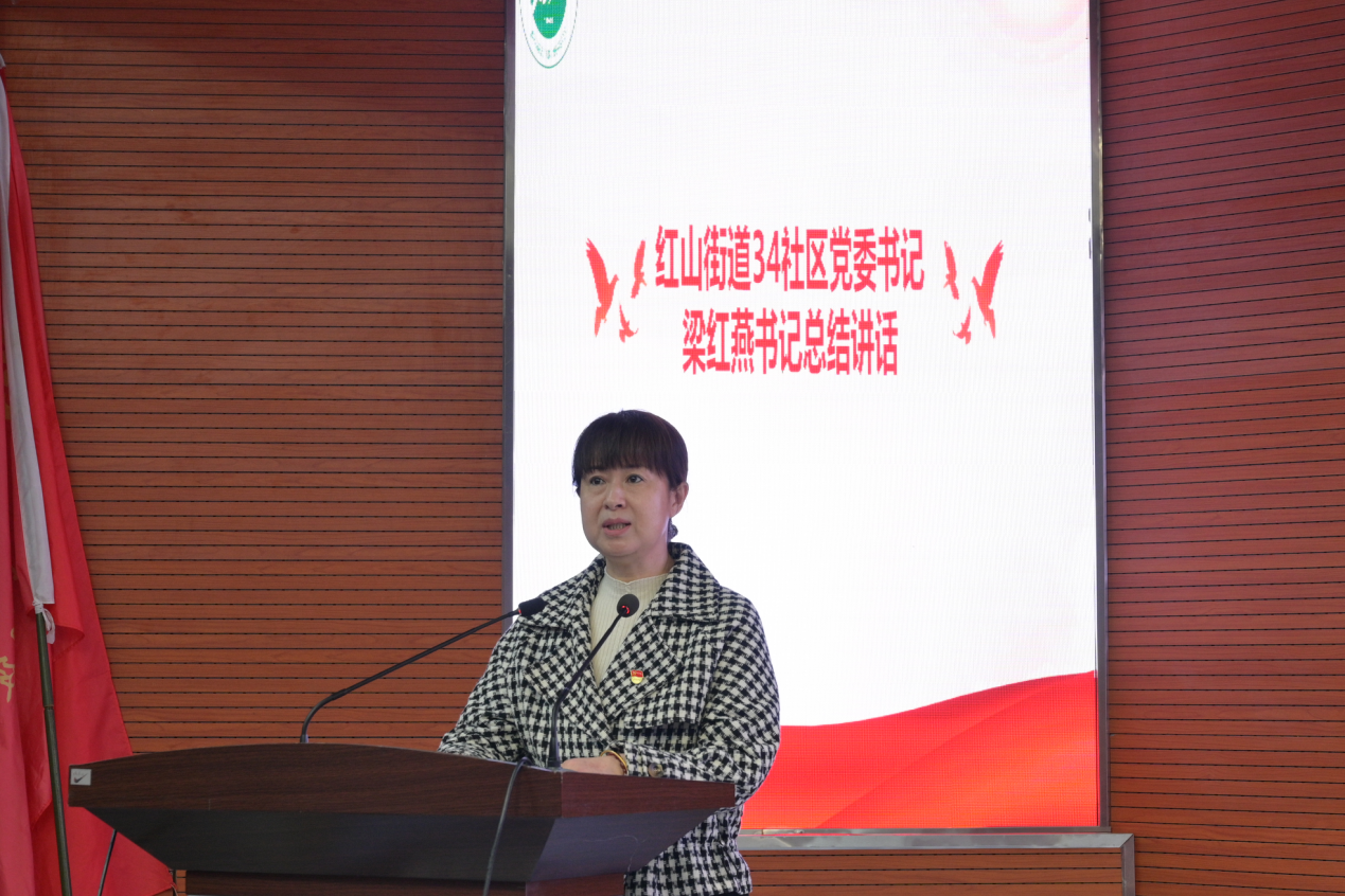 34社区党委书记梁红燕对此次活动进行总结发言,希望青年大学生牢记习近平总书记的嘱托,树立勤劳勇敢、自强不息的民族精神,铭记历史,把老兵的精神转化为前行的动力,争做时代新人。