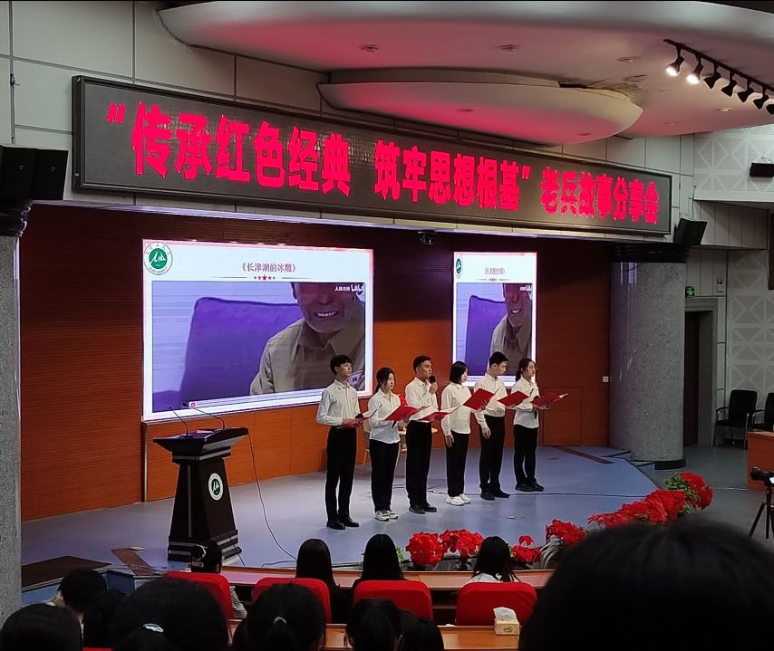 鸭绿江边,军歌嘹亮,多少英雄儿女肩负使命,奔赴他乡;长津湖畔,炮火纷飞,多少横刀勇士卧冰爬雪,舍生忘死。为表达石大学子对老兵们的崇高敬意,师范学院主持团带来朗诵《长津湖的冰雕》,战士们年轻的生命永远留在了抗美援朝的战场,但他们的事迹永远留在了每一位中国人民的心里,当朗诵到“这一仗我们不打,我的下一代就要打!”在场的所有人用热烈的掌声表达了对老一辈革命家崇高的敬意。