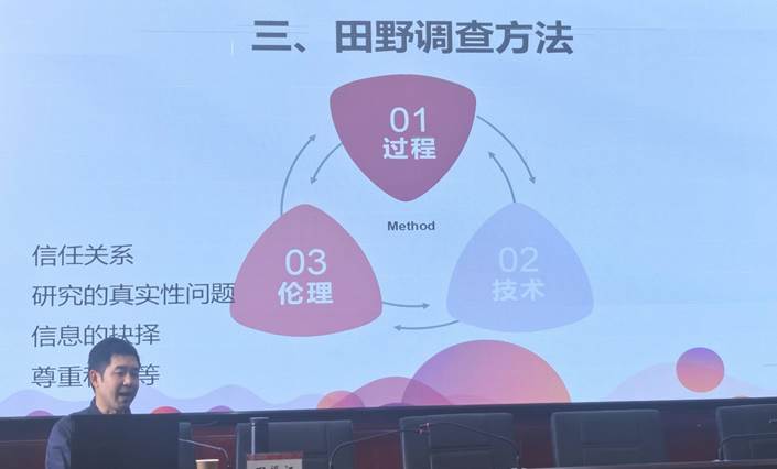 田振江副教授从自身田野调查经验出发,对田野调查的基本做法与成功关键进行了总结。他谈到,田野调查是高校人文社科领域重要的研究方法,也是高校研究取得创新的重要法宝。通过了解教育人类学,研究生能更全面、深刻地认识世界。