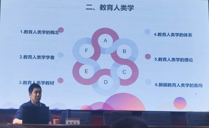 讲座伊始,田振江副教授结合自身田野研究的经历介绍了自己的学术背景。他以学科概念、著名学者、专业教材、学科体系、系统理论和新疆教育人类学的面向六个维度构建教育人类学体系。田振江副教授指出,田野调查的重点在于挖掘人物与村庄的故事,需要研究者具备全局观,通过多点调查把握全局。研究者还须见微知著,把田野调查追溯到日常生活的恒常。