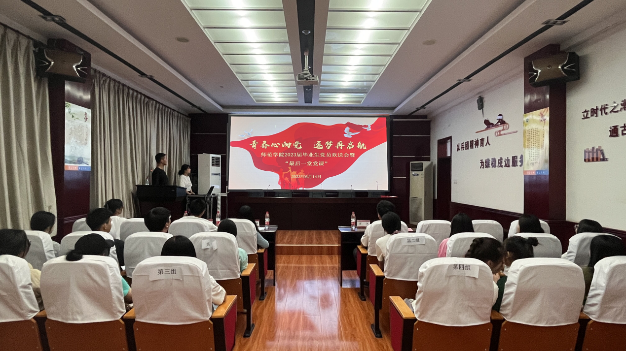 党旗引领铭初心,奋楫扬帆再出发。为深入学习贯彻习近平新时代中国特色社会主义思想,共同践行初心使命,赓续共产党人精神血脉,厚植青年爱党爱国情怀,树立为人民服务的远大抱负。6月14日,师范学院研究生党支部、本科生党支部成员在北区师范楼103室举办“青春心向党,逐梦再启航”毕业生党员欢送会暨“最后一节党课”活动。莅临此次活动的有学办副主任、本科生第二党支部书记万江、研究生党支部书记高丽娜和本科生第一党支部书记李学良老师。