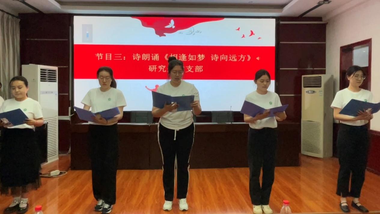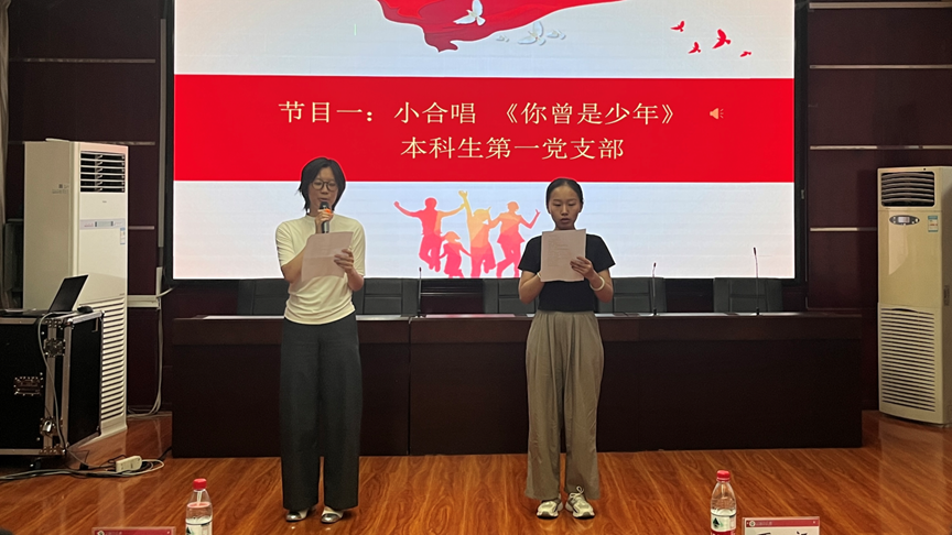 党课之后,教师代表学院向2023届毕业生党员赠送了纪念品。本科生党支部和研究生党支部分别以合唱和诗朗诵的形式表达了对学校、老师和同学们的感谢,对大学、研学生活的留恋,以及对未来美好生活的憧憬。同学们的真情表演深深地感染了台下的观众,赢得了一次次热烈的掌声。