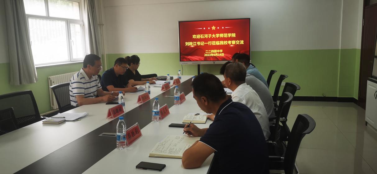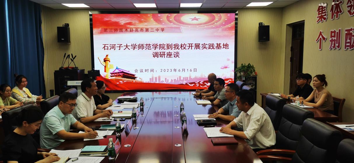 2023年6月11日至6月17日,师范学院党委书记刘政江、副院长朱海东、教育硕士点负责人马萍和教育系教师崔晓娟赴新疆生产建设兵团第二师华山中学、第十四师昆玉中学和皮山农场中学、第三师图木舒克第二中学调研座谈。本次走访调研,既是对实践基地建立以来各基础学校与石河子大学师范学院在人才培养、联合科研互助等方面的工作总结,也是师范学院研究生教育发展新阶段开启U-S深度合作的前瞻之旅。