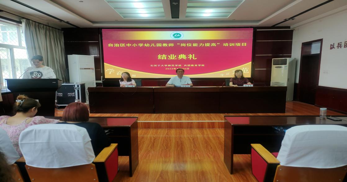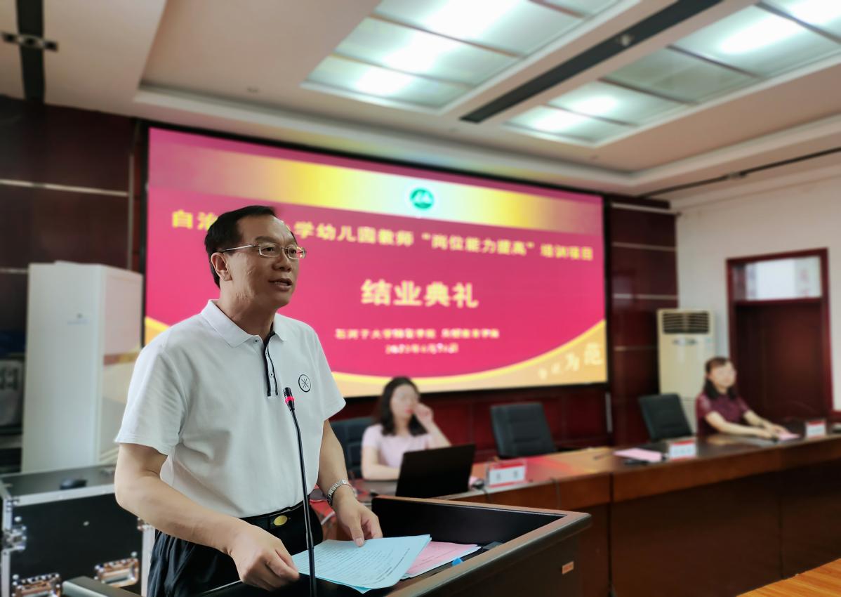 2023626日上午,我院承办的2022年度自治区幼儿园教师“岗位能力提高”培训项目结业典礼在师范学院103学术报告厅举行。学院领导、项目执行负责人、首席专家、班主任及100名参训教师参加结业典礼。