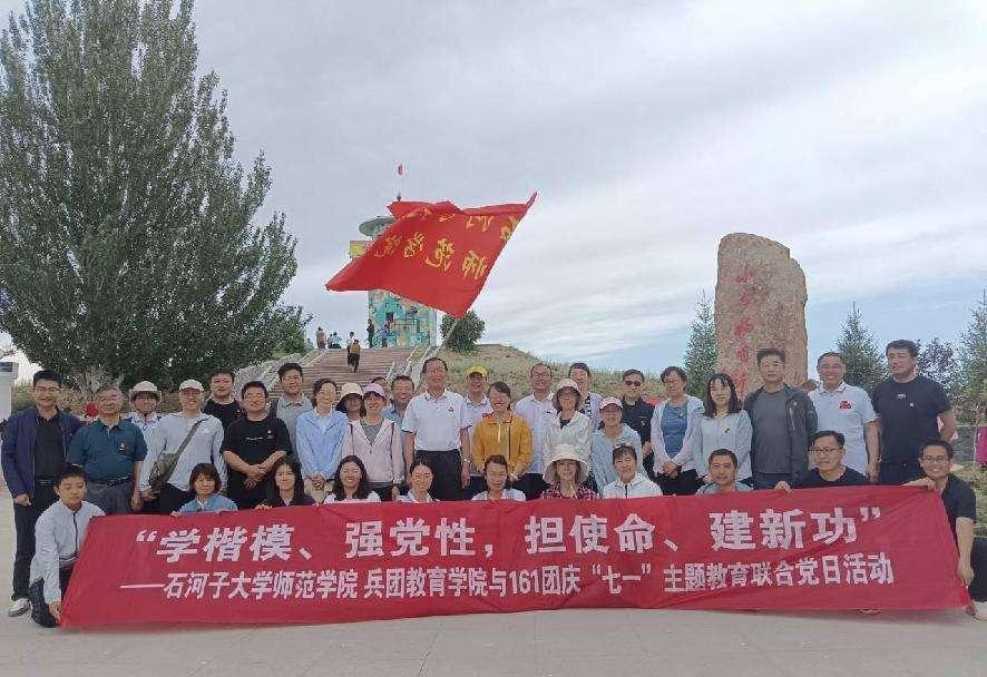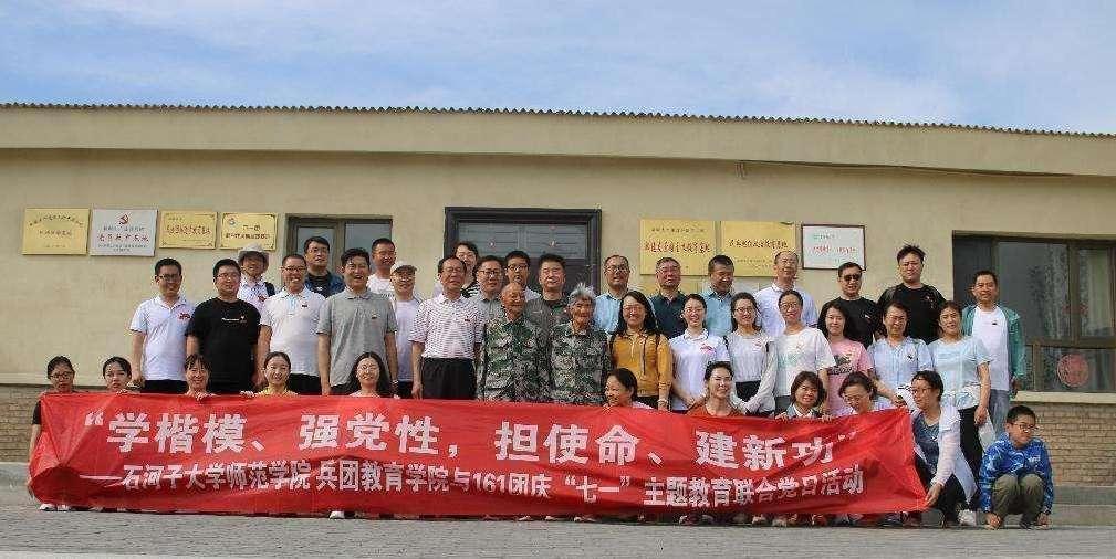 为扎实做好学习贯彻习近平新时代中国特色社会主义思想主题教育,落实新疆工作总目标,履行新时代兵团职责使命,发扬兵团精神,发挥党员先锋模范作用,提高师范人为党育人、为国育才的能力,在中国共产党成立102周年之际,学院于6月28-29日与第九师161团联合开展了“迎七一·主题教育+党建”最佳党日活动,40名学院领导及教师参加。