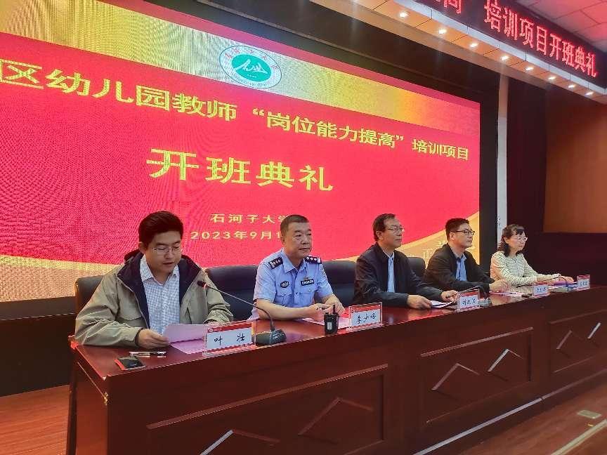 2023年9月16日上午,我院承办的自治区幼儿园教师“岗位能力提高”培训项目开班。兵团教育学院院长、石河子大学师范学院党委书记刘政江、石河子市公安局东明新村派出所所长李少峰、石河子大学护士学校领导、项目培训负责人、班主任及100名参训学员参加开班典礼。开班典礼由学院党委副书记叶壮主持。