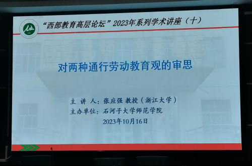 新中国成立以来,我国高度重视学校劳动教育。新修订的《中华人民共和国教育法》将“劳动教育”写入党的教育方针中。为使学院师生更好地了解劳动与教育的内在联系,学院于10月16日上午在师范学院103学术报告厅开展2023年第十场“西部教育高层论坛”学术讲座,学院有幸邀请浙江大学求是特聘教授张应强作了题为《对两种通行劳动教育观的审思》的主题讲座,讲座由师范学院副院长冯用军教授主持,学院全体教师、研究生及感兴趣的本科生参加了本次讲座。