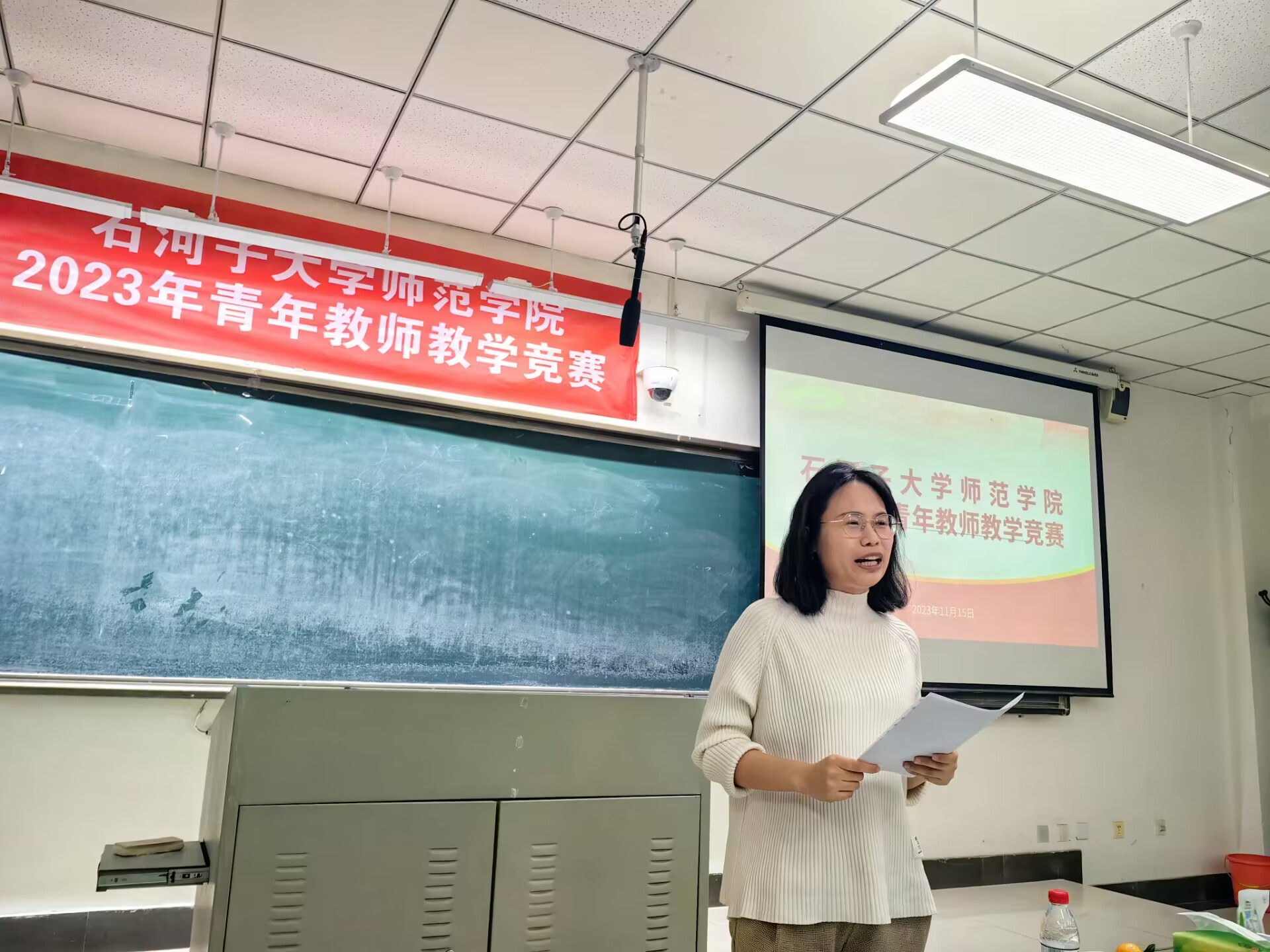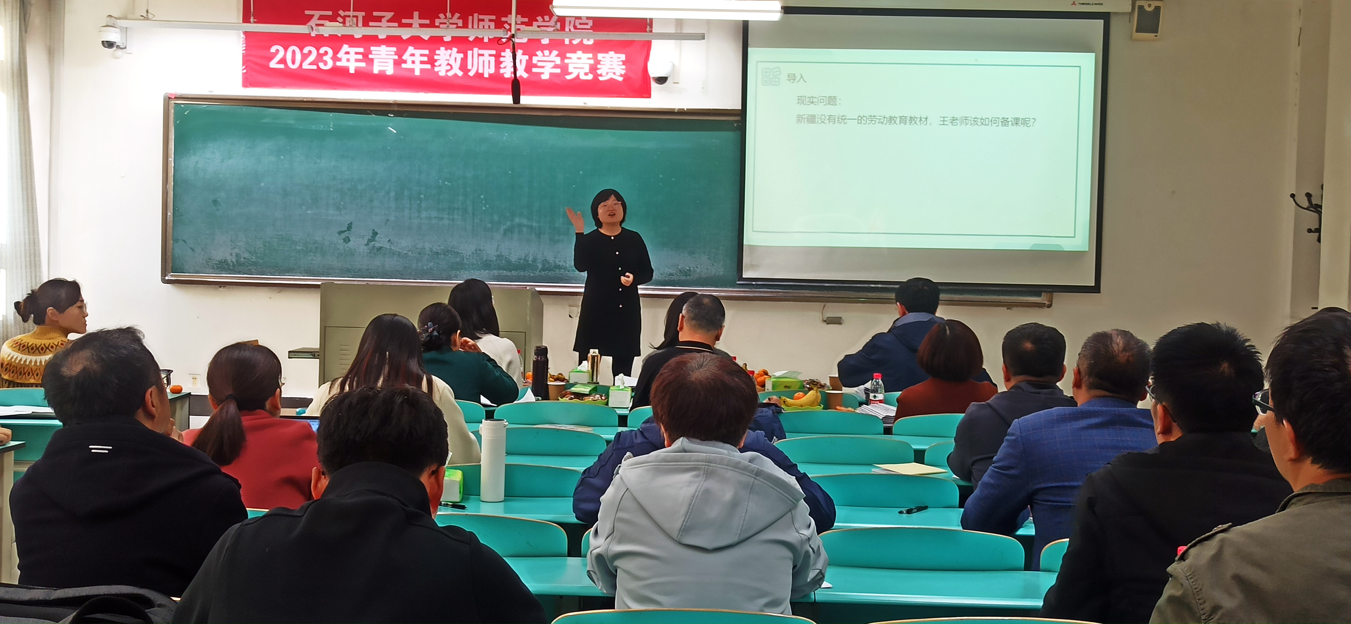 为迎接新一轮本科教育教学评估,强化教学技能及教学质量提升意识,石河子大学师范学院于2023年11月15日举办了一场别开生面的青年教师教学竞赛。这场竞赛以“以赛促教,强师赋能”为主题,充分展现出青年教师的激情与活力。他们灵活运用各种教学方法和手段,用富有感染力的语言和精美的课件,将丰富的知识融入课堂教学。