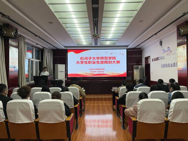 为强化师范学子生涯规划意识,引导树立正确的就业观,落实兵团相关要求,推进创业服务活动的深入开展,提高人才培养质量,挖掘大学生的潜力,促进毕业生高质量充分就业。2023年11月19日下午20:00在石河子大学北区师范学院103学术报告厅举办师范学院大学生职业生涯规划大赛。