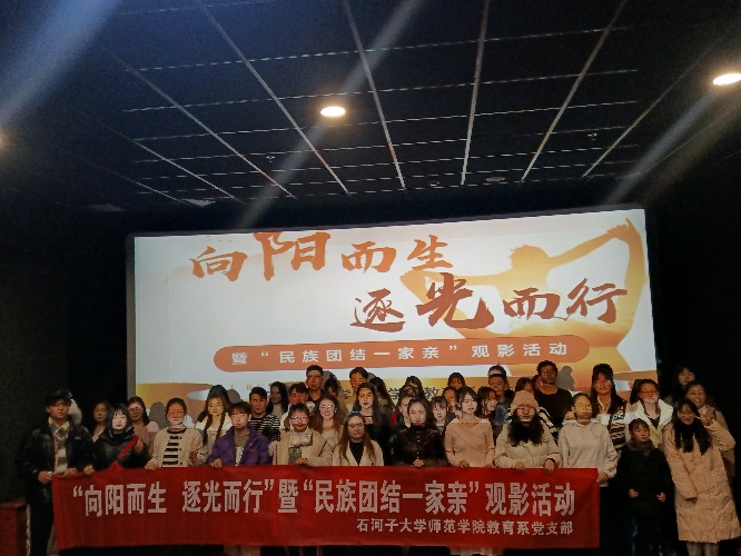 为增进各族师生的交往、交流、交融,增强各族师生情谊,以及面对生活困境习得爱与勇敢的能力,石河子大学师范学院教育系党支部各族师生于2023年12月10日在友谊大厦好莱坞影城开展以“向阳而生,逐光而行”为主题的民族团结一家亲观影活动,集体观看了电影《再见,李可乐》。