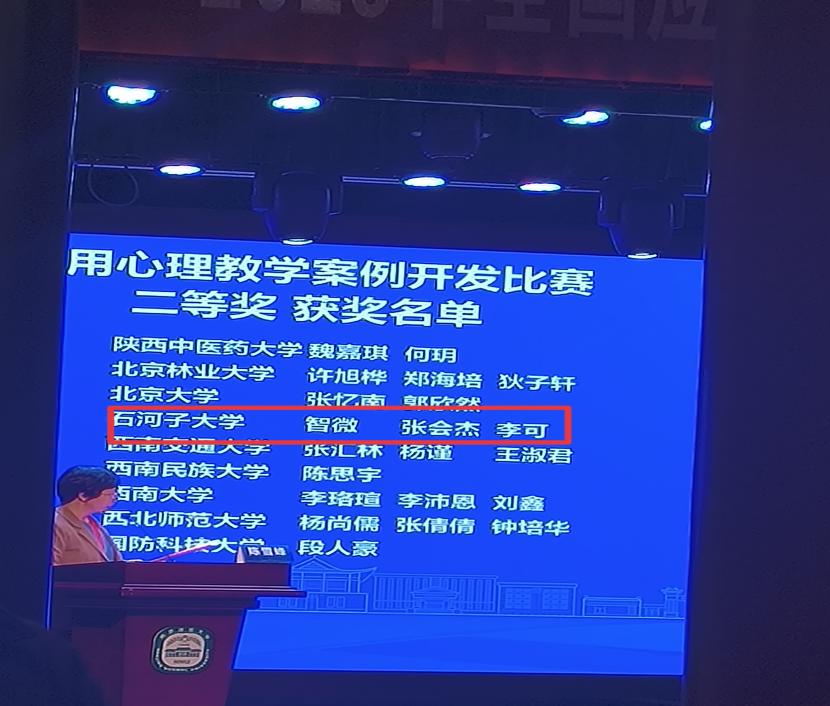 大赛共设心理咨询面谈技能、应用心理教学案例开发、应用心理教学技能、心理科普短视频四个赛道,由苏昊老师指导的汤月茹同学荣获应用心理技能教学技能赛道一等奖;由智微、张会杰、李可同学开发,朱海东老师指导的案例《面对欺凌,如何保护少年的你》荣获应用心理教学案例开发赛道二等奖;由赵文寅同学创作,麻超老师指导的短视频《反转思维,看见幸福》荣获心理科普短视频赛道三等奖。