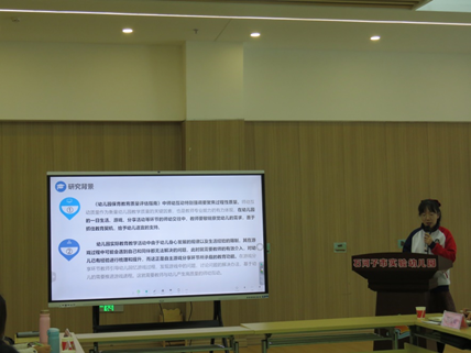 此次课题成果分享交流会由方建华教授主持。方建华教授致开幕词后,各幼儿园园长及教师做汇报分享。实验幼儿园陈文换老师以《传统节日中班幼儿爱国主义教育现状及对策研究》为分享内容,从选题背景与意义、研究过程、问题及原因分析和建议等五个方面向专家教师及与会人员展开分享。之后,实验幼儿园蒙奎洁老师以《新手教师游戏分享环节师幼互动质量提升的行动研究》为分享内容,从课题的提出、研究方案的制定、研究的现实意义到课题的具体实施,对课题研究的亮点进行了展示。第一幼儿园刘新萍园长以《家园社协同幼小衔接的问题及对策研究》为分享内容,展示了其扎实的研究功底,也体现了相关课题组有效的研究工作。