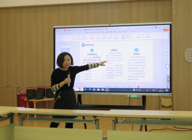 方建华教授汇报了其课题《数字化背景下自主游戏中幼儿学习品质监测与培养路径研究》,就相关领域的前沿动态进行了分享,为专家教师和与会人员提供了丰富的学术盛宴。而后与各专家教师展开交流讨论,并解答教师疑惑。