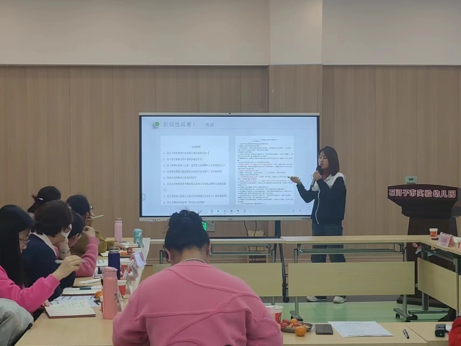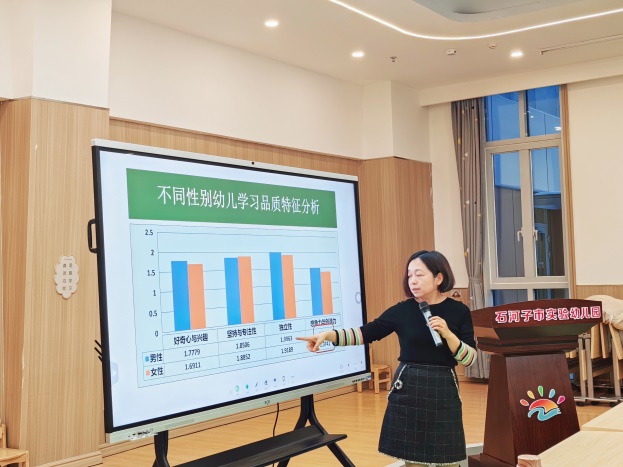 紧接着,石河子第二幼儿园蔡玉园长以《幼儿园教育过程质量常态化自评机制构建的实践研究》为分享内容,充分展示了课题组的研究成果,并反映了成员教师在课题研究中专业能力的提升。随后,石河子第二幼儿园吕丽娟副园长和贾玉琴老师分别以《幼小双向衔接视角下大班幼儿前书写能力的培养策略研究》《新手教师游戏观察能力提升的策略研究》为分享内容,展现了其独特的学术视角和创新思维。而后,专家教师们开展了充分的讨论分享。