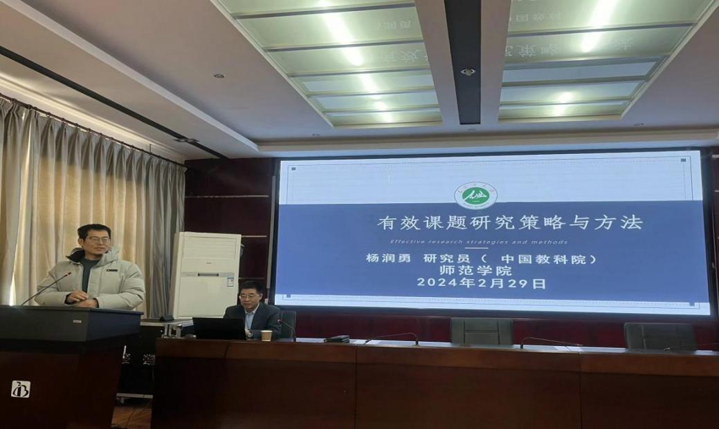 为使学院师生更好掌握课题研究的策略与方法,更加熟练地进行课题研究,产出高质量的研究成果,学院于2月29日下午在师范学院103学术报告厅开展2024年第一场“西部教育高层论坛”学术讲座,学院有幸邀请中国教科院研究所所长、博士后导师、中国成教协会教师发展专委会理事长、中国战略学会教育标准专委会副理事长杨润勇研究员莅临指导。讲座由学院副院长冯用军教授主持,学院全体教师及感兴趣的研究生参加了本次讲座。