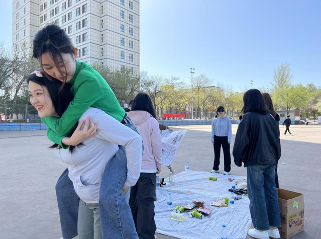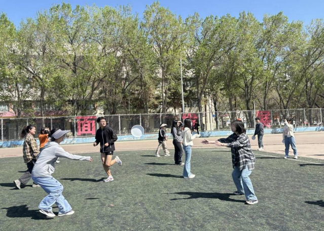 伴随着青春洋溢的音乐,“飞盘接力”游戏把活动气氛推向高潮。各组裁判宣讲游戏规则,组员之间依次接力飞盘,用时短的胜出。在这个过程中,不同民族的同学们相互协作、相互配合,展现出了团结一心的精神。同学们逐渐敞开心扉融入到集体中,大家不分民族,如同兄弟姐妹一般,共同享受着游戏的乐趣。