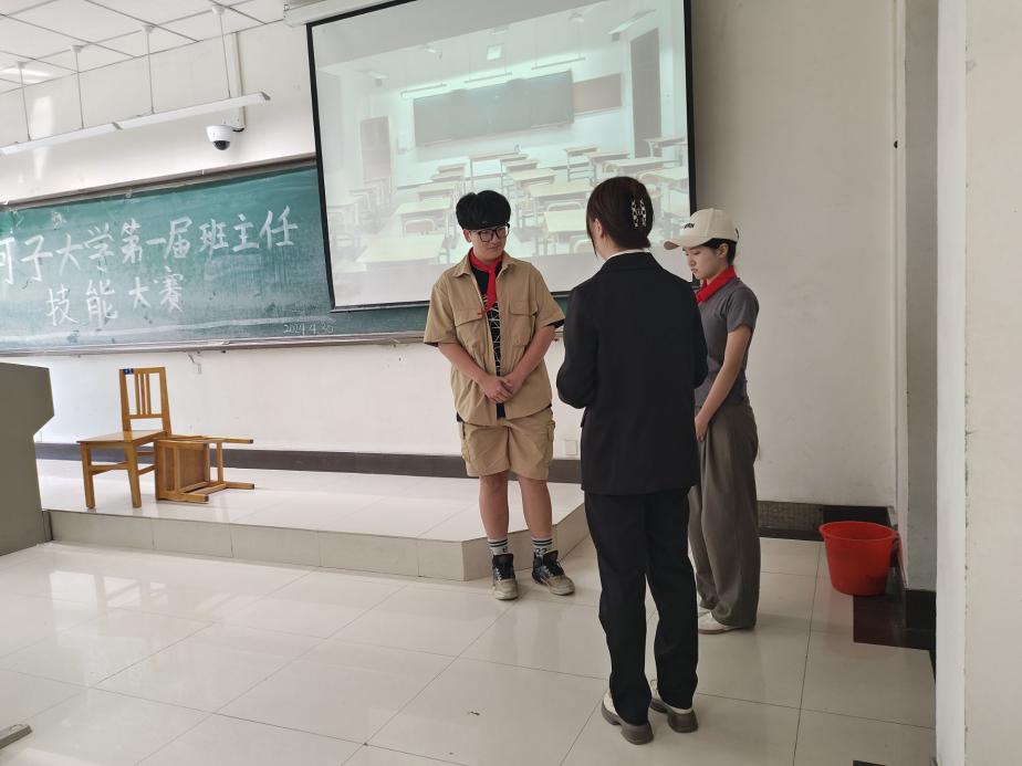 在“四有好老师”与“教育家精神”大力弘扬,教师主流文化极大彰显之际,为有效提升和改善师范类专业本科生的教育专业能力,4月30日,石河子大学第一届班主任技能大赛在博学楼A108、A114、A115举行。本次比赛分为三个赛道,邀请校外实践导师林静、王丽、席海彦、杨咏儿以及石河子大学师范学院教师裴长安、苏刚刚、崔晓娟、王东、胡倩担任评委。