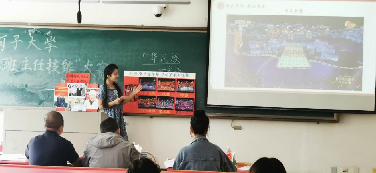 “铸牢中华民族共同体意识活动”赛道,以增强班级凝聚力、营造和谐团结的班级氛围为目的进行班级活动设计。选手们紧扣“民族团结”这一主题,开展了形式丰富的活动,融合多媒体展演、实质手工制品展示等汇报演示,向同学们传递了中华民族共同体意识。