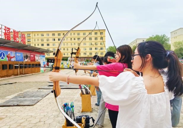 铸牢中华民族共同体意识是当前我国开展民族工作,解决民族问题的主线方针,也是促进民族团结、巩固国家统一、实现中华民族伟大复兴的强大价值引领。为深化学生对民族团结及中华民族共同体意识的理解,王文凤老师带领小学教育专业2022级的70余名同学走进了石河子市第十一小学,开展了一场别开生面的见习活动。此次活动不仅让同学们亲身体验了射箭运动的魅力,更通过这一体育项目,进一步巩固了他们对于民族团结和中华民族共同体意识的认知。