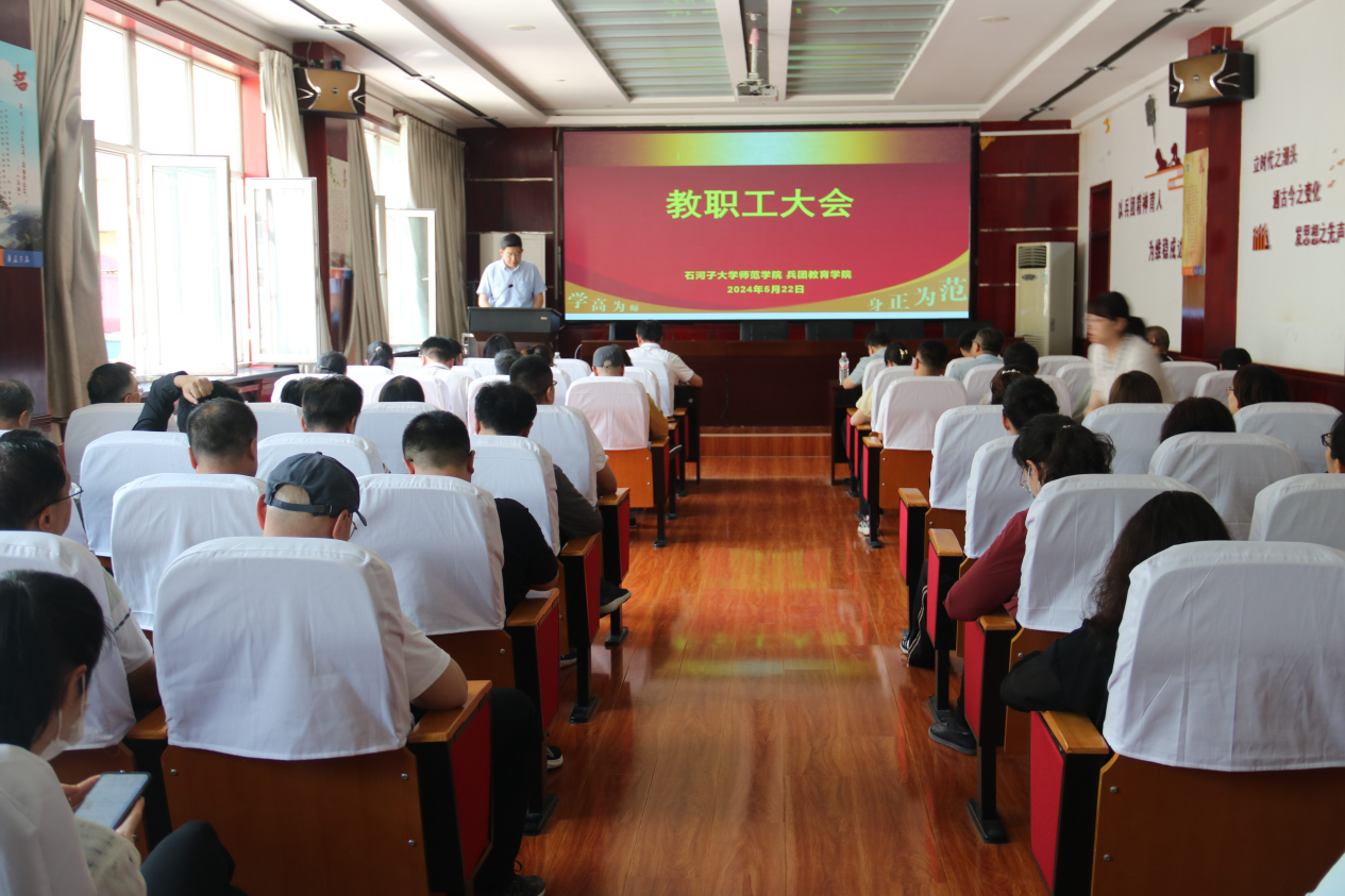 为深入学习贯彻在全党开展党纪学习教育,结合学院开学以来各方面的工作进展,推进党风廉政及师德师风建设,5月22日下午,师范学院全体教职工在学院一楼学术报告厅召开了教职工大会。会议由师范学院副书记叶壮主持。