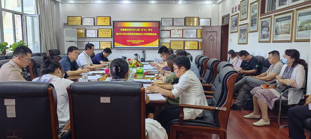 6月3日下午,师范学院 兵团教育学院在学院四楼会议室召开党委理论学习中心组(扩大)学习暨2024年6月师范学院就业工作专题推进会,学校党委宣传部曹晶晶、左光、学院党委中心组成员、中层干部参加了会议,学院党委书记刘政江主持。