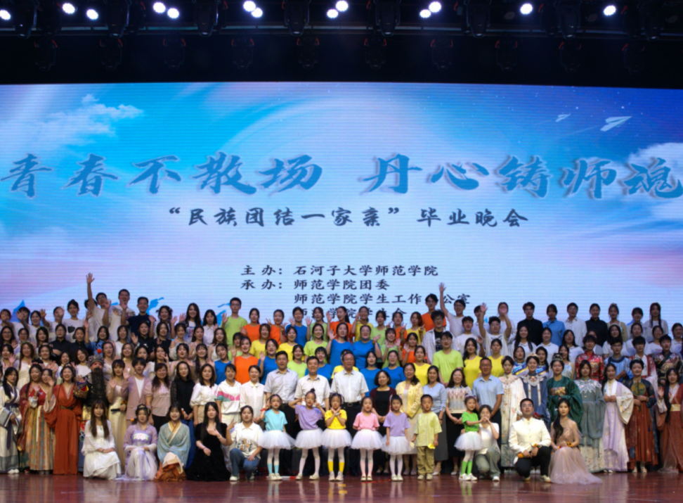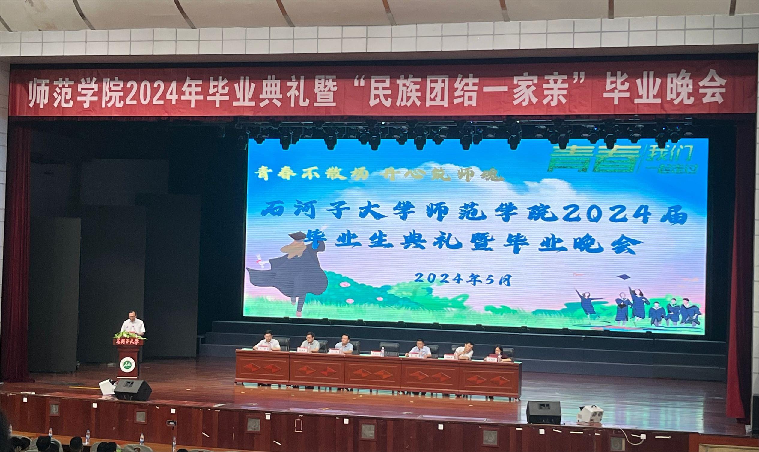 5月26日,学院2024届毕业典礼暨“青春不散场 丹心铸师魂”毕业晚会在北区会堂举行。典礼上,师范学院党委书记刘政江寄语师范学子,在传承与弘扬兵团精神和胡杨精神、老兵精神中汲取精神力量,为更好履行兵团“三大功能”、发挥“四大作用”做出石河子大学师范学子应有的贡献。校团委书记管欣、党委学工部副部长丁成分别宣读了《关于表彰师范学院2024届优秀毕业的决定》《关于选聘师范学院校友联络员的决定》。万千同学代表毕业生发言,深情回顾了求学感悟,向学院致以了崇高的敬意,向老师们表示了衷心感谢。在全院师生共同参演的毕业晚会中,大家一同回顾走过的青春印记,一道祝福未来的人生旅途,离别的感伤与青春的憧憬交织成一幅幅动人画面,舞剧《南疆支教》、歌曲《启程》等节目,将晚会推向了高潮,这场庆典,是全体师范学子对师范情怀的深情表白,热烈而浓厚。2024届的毕业生们将带着珍贵的记忆和学院的嘱托,为党的教育事业贡献青春的智慧与力量,在服务国家战略中彰显青春才华。