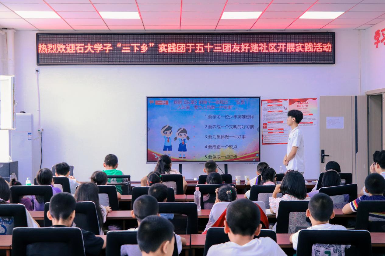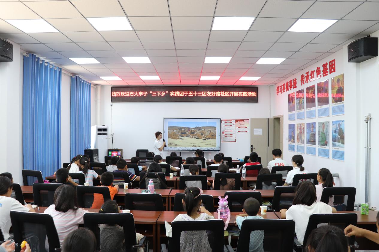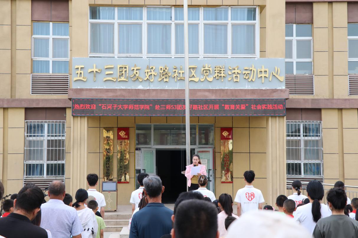 为深入学习贯彻习近平新时代中国特色社会主义思想,落实教育部等九部门关于开展第26届全国推广普通话宣传周活动的通知,进一步服务铸牢中华民族共同体意识,全力助推教育强国、文化强国建设。石河子大学师范学院赴三师五十三团教育关爱社会实践服务团走进图木舒克市第三师五十三团金胡杨镇友好路社区,深入各民族青年群体中,根据当地实际情况,构建“五彩”教育推普课堂,助力推广普通话及国家通用语言文字,引导广大学生为中国式现代化奉献青春的磅礴力量。