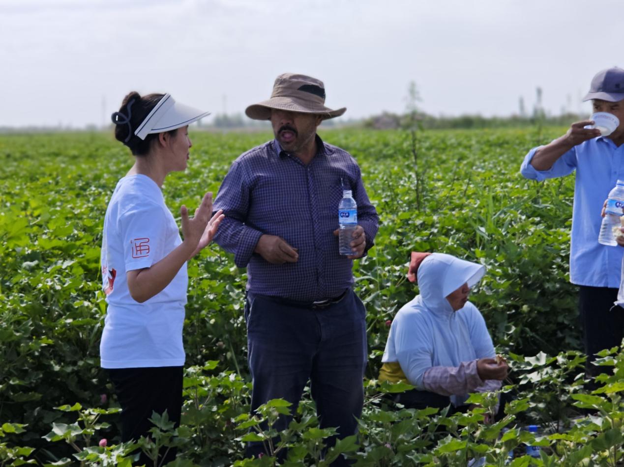 石河子大学师范学院赴新疆生产建设兵团五十一团八连“四海同语,普音盛夏”通言通语实践团的11名师生通过驻连、进户、实地调研等多种方式了解当地各民族群众掌握国家通用语言文字的实际情况,依托自编的学习手册,构建“线上+线下”双效联动机制,将培训内容与农田实践紧密结合,带领农户们学唱劳动号子,以各族群众喜闻乐见的方式将国家通用语言文字全方位融入农户日常生产生活,提升语言素养。连队职工克比尔·尼司甫说道:“石河子大学师范学院的老师和同学们提供的教材和小程序方便快捷,我们随时可以学习。国家通用语言文字推广工程利国利民,于我们基层农牧团场同样受益颇多。”