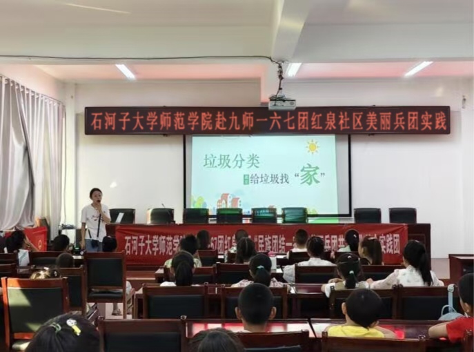 在生态保护专题活动中,实践团成员与社区居民紧密合作,共同排练情景短剧,生动再现日常生活中的趣事,使大家在欢笑声中对环境保护的重要性有了深刻领悟。实践团成员化身为绿色生活理念的传播者,以浅显易懂的讲解,普及节约用水和垃圾分类的智慧方法,引导社区居民从细微处着手,共同维护我们的地球家园。同时自创朗朗上口、易于传唱的生态歌谣,使环境保护的理念如同春风化雨般深入人心。与此同时,开展了“变废为宝”创意手工活动,促进资源的循环利用。“垃圾仅在混杂时才是垃圾,一旦进行分类回收,它们便化身为宝贵的资源!”一年级学生马沁语抱着自己用塑料瓶制作的笔筒,用稚嫩的声音说:“我制作的这个‘宝贝’要送给姐姐,这样姐姐就不需要再购买笔筒了。”她那可爱而懂事的表现赢得了在场众人的赞誉。