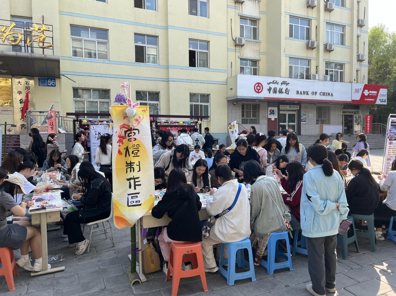 随着悠扬的音乐声响起,中秋游园会正式拉开帷幕。师范学院主楼前,各式各样的活动摊位琳琅满目。在手工宫灯制作区,师生们纷纷动手尝试,利用竹片、木条或扭扭棒等材料,巧手制作出一盏盏精美的宫灯。这些宫灯不仅承载着节日的喜庆与祝福,更凝聚了师生们的智慧与创意,成为活动现场的一道亮丽风景线。