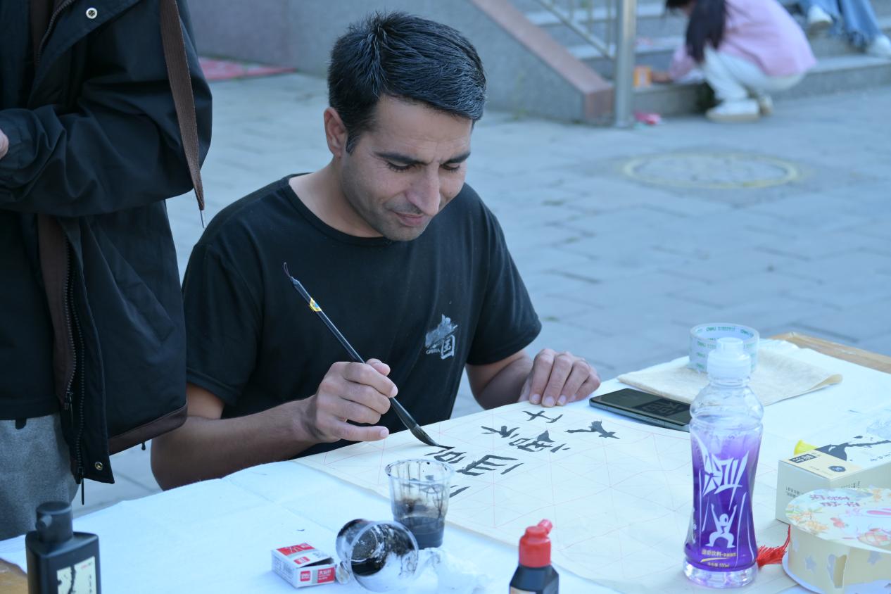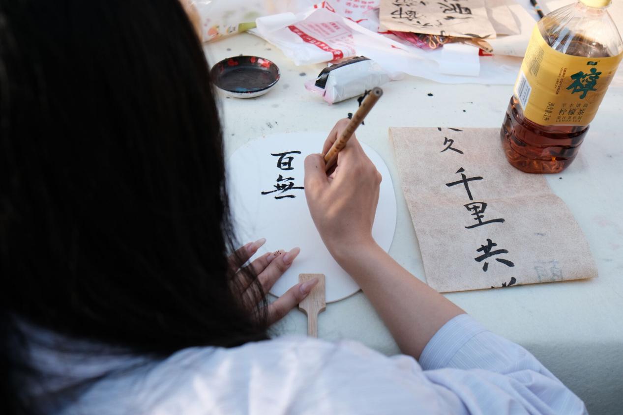 红烛书法社的同学们现场挥毫泼墨,把对中秋的祝福与祈愿融入笔端,墨迹在宣纸上缓缓晕开,散发出阵阵墨香。师生们沉浸在书法艺术的魅力之中,感受着传统文化的深厚底蕴。