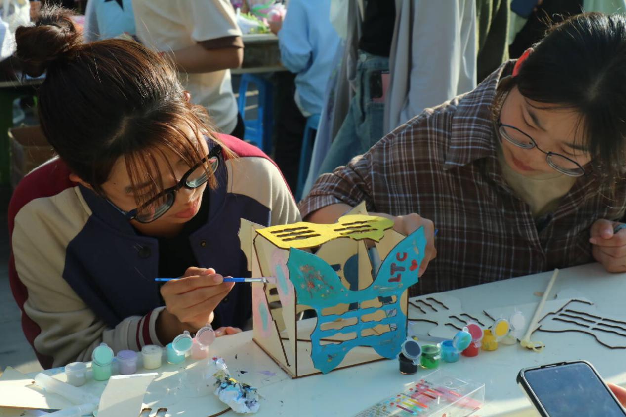 在漆扇制作区,五彩斑斓的颜料与扇面相遇,碰撞出绚烂的火花。师生们用灵巧的双手,在扇面上绘制出一幅幅精美的图案,一面面精妙绝伦的漆扇作品在他们手中诞生,成为中秋佳节的美好纪念。
