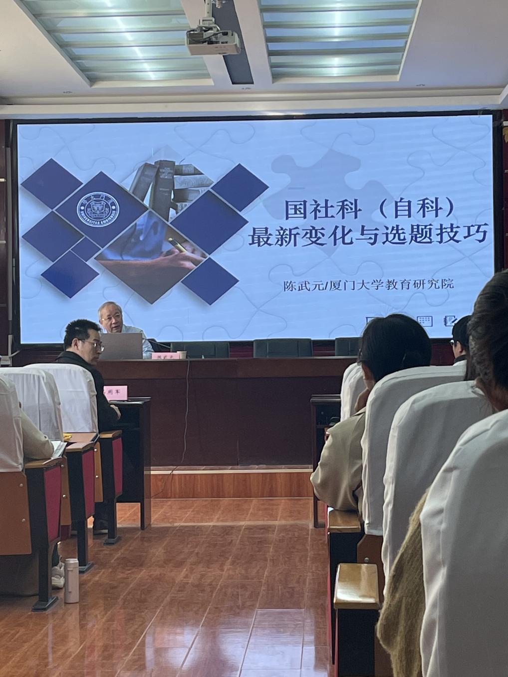 为提高学院教师科研素养,帮助教师掌握国社科最新变化与选题技巧,学院于9月20日上午开展了“西部教育论坛”2024年第五场学术讲座。此次讲座特邀厦门大学教育研究院陈武元教授,围绕“国社科(自然)最新变化与选题技巧”主题开展。讲座由师范学院副院长冯用军教授主持,学院全体教师及研究生代表参加。