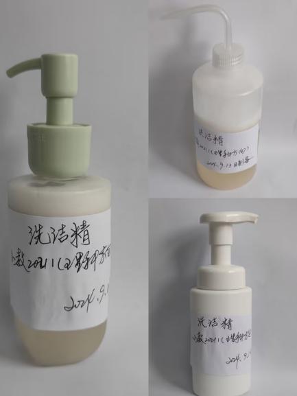小学教育(理科)同学制作的洗洁精已置于师范学院洗手间