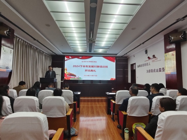 为切实做好学院党员发展工作,提高党员发展对象政治素养,学院于10月15日在一楼学术报告厅举行了2024年下半年党员发展对象培训班开班典礼。典礼由组织员王立新主持,学院党委书记郝朝晖、党委副书记叶壮、本科生和研究生党支部书记、培训班班主任以及26名参训学员参加。