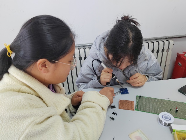 课堂上,老师先深入浅出地讲解了电子元件的识别与功能、电烙铁的使用方法、蓝牙音箱的工作原理等理论知识。同学们聚精会神地聆听,不断提出问题,积极与老师互动。随后,同学们都迫不及待地开始动手实践。他们小心翼翼地焊接电子元件,认真组装音箱外壳,将理论知识一步步转化为手中的实物。