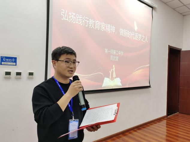 参赛教师结合学习贯彻全国教育大会精神的体会、第一师和所在学校立德树人、以教育家精神铸魂强师的生动实践,用真挚的情感、生动的语言讲述了一个个感人至深的教育故事,鲜活的事例既有蔡元培、陶行知等大先生,也有身边普通的教师和教育工作者,集中展示了新时代兵团第一师教师扎根南疆大地躬耕教坛的风采和担当,精彩的演讲赢得全场阵阵掌声。