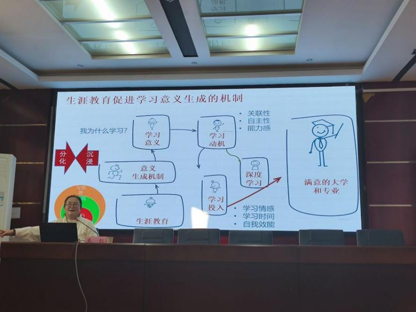 讲座主要围绕中国学生发展的核心问题、解决问题的中国文化理念、解决问题的中国实践和模式以及学生发展与生涯教育的实证研究四个方面展开。朱红老师以一个“黑马”高三生成功考入理想大学的案例为引,深入阐述了生涯教育的内涵及其在学习意义生成中的关键作用。她强调,生涯教育能够让学生深刻理解学习的意义,激发学习动机,进而促进学生学习投入和深度学习,最终帮助学生实现理想的大学和专业选择。
