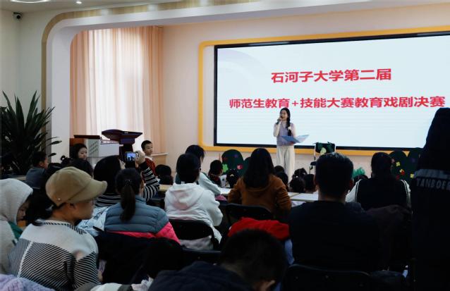 为全方位推动学前教育发展,强化家-校-社协同育人效能,以戏剧表演的特殊形式深化石河子大学学前教育专业学生对专业知识的内化与应用,磨砺其教学技能,为日后投身幼教事业夯实基础,2024 年 11 月 23 日,学前教育教研室在石河子大学幼儿园多功能厅隆重举办 “石河子大学第二届师范生‘教育 +’技能大赛” 教育戏剧决赛。此次比赛不仅是一场技能比拼,更是学子们对教育梦想与热忱的真挚袒露。当日,石河子大学幼儿园的幼儿及家长受邀亲临决赛现场,大赛评委由石河子大学幼儿园园长王一茗、石河子大学学前教育教研室主任李攀以及骨干教师张璇等担任。