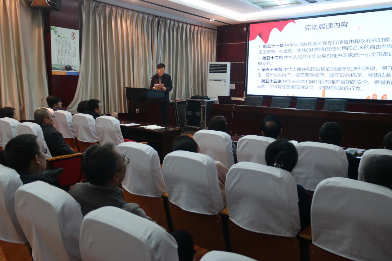 在第十一个国家宪法日之际,学院积极响应号召,组织开展了以“弘扬宪法精神,维护宪法权威”为主题的“宪法宣传周”活动,党委书记带领全院师生诵读宪法内容,向全院师生普及宪法知识,弘扬宪法精神,增强宪法意识和法治观念,使广大师生深刻认识到宪法作为国家根本大法的权威性和重要性。
