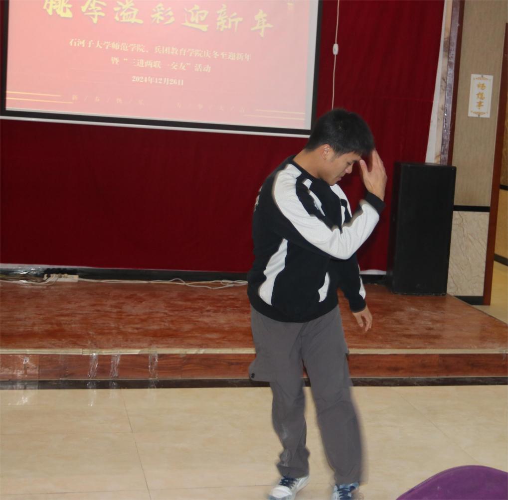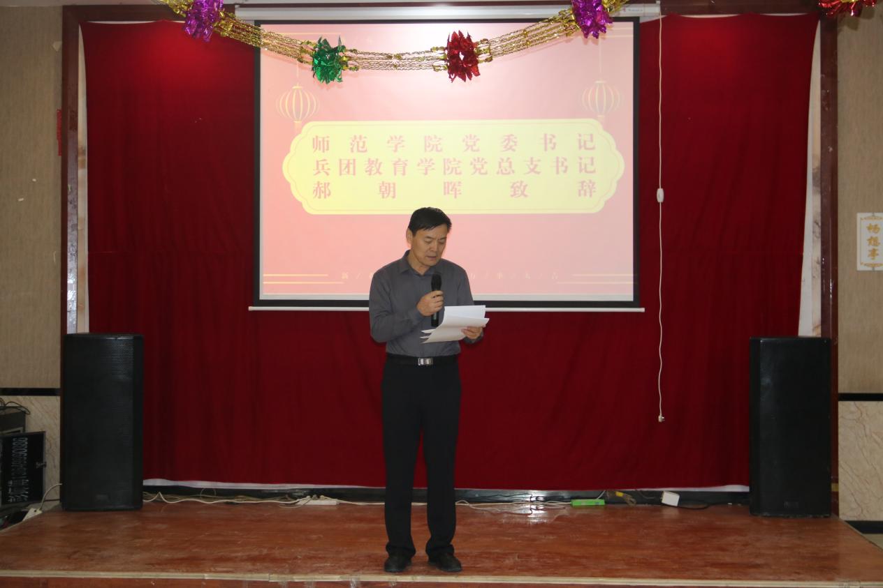 活动在师范学院党委书记、兵团教育学院党总支书记郝朝晖情真意切的致辞中拉开帷幕。他对在场的所有师生致以节日的问候,并从党的建设、教学和专业、科研与学科、师资队伍、人才培养、社会服务等方面回顾了一年来学院取得的成就,同时,展望新年,希望大家为更加辉煌的成绩和更加美好的未来而共同努力。