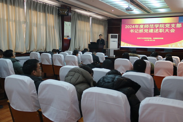 2025年1月15日,师范学院在学院学术报告厅召开2024年度基层党组织书记抓党建述职评议考核大会。学院领导、各党支部书记、支部委员代表及党员代表参会,学生支部代表线上同步参与。会议由学院党委副书记叶壮主持。