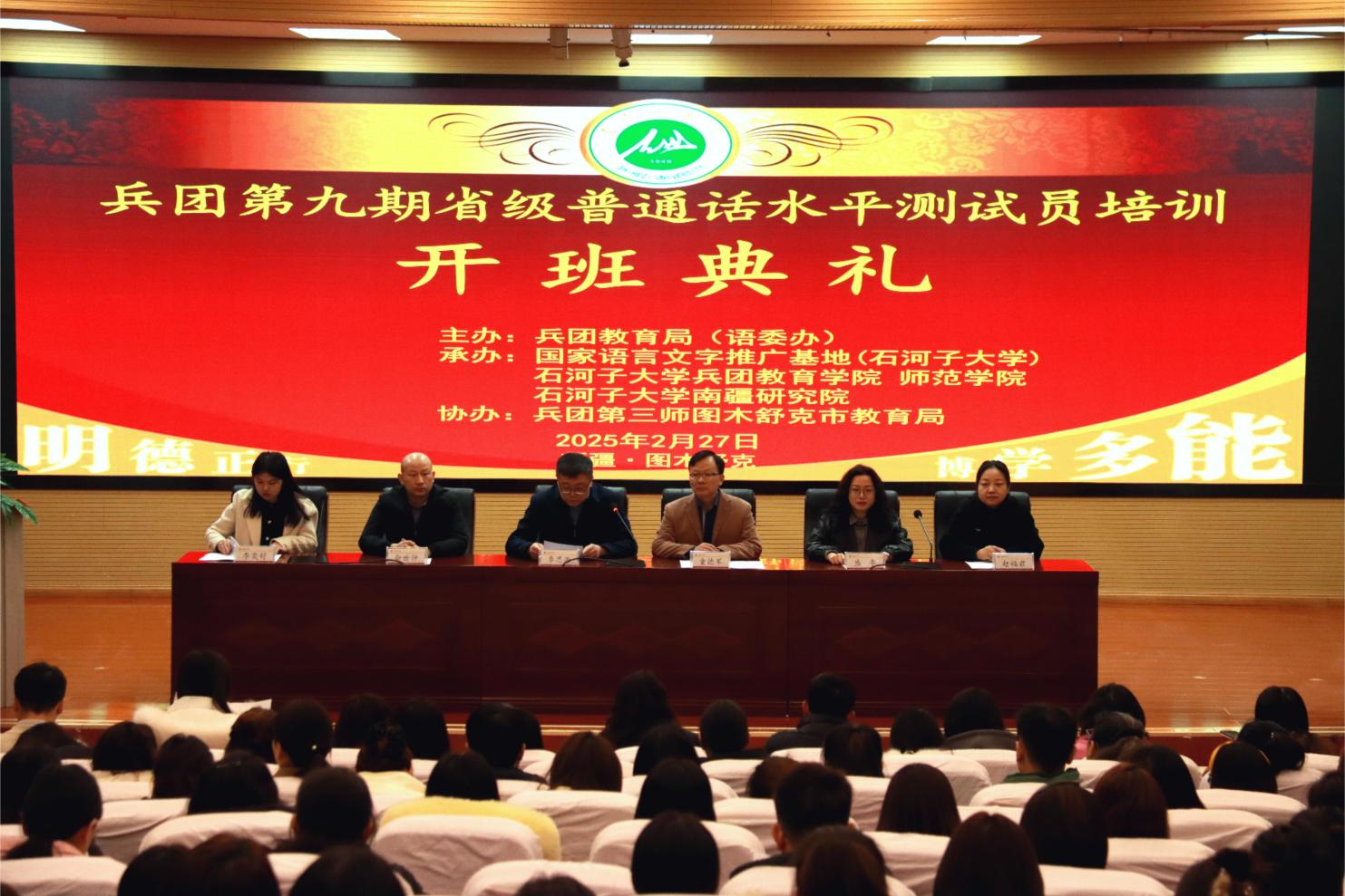 227兵团教育局(语委办)主办,国家语言文字推广基地(石河子大学)、兵团教育学院和师范学院承办的兵团第九期省级普通话水平测试员培训在石河子大学南疆研究院开班,主办、承办方及第三师图木舒克市教育局有关人员参加开班典礼,基地办公室主任、教务处处长李思源主持典礼。