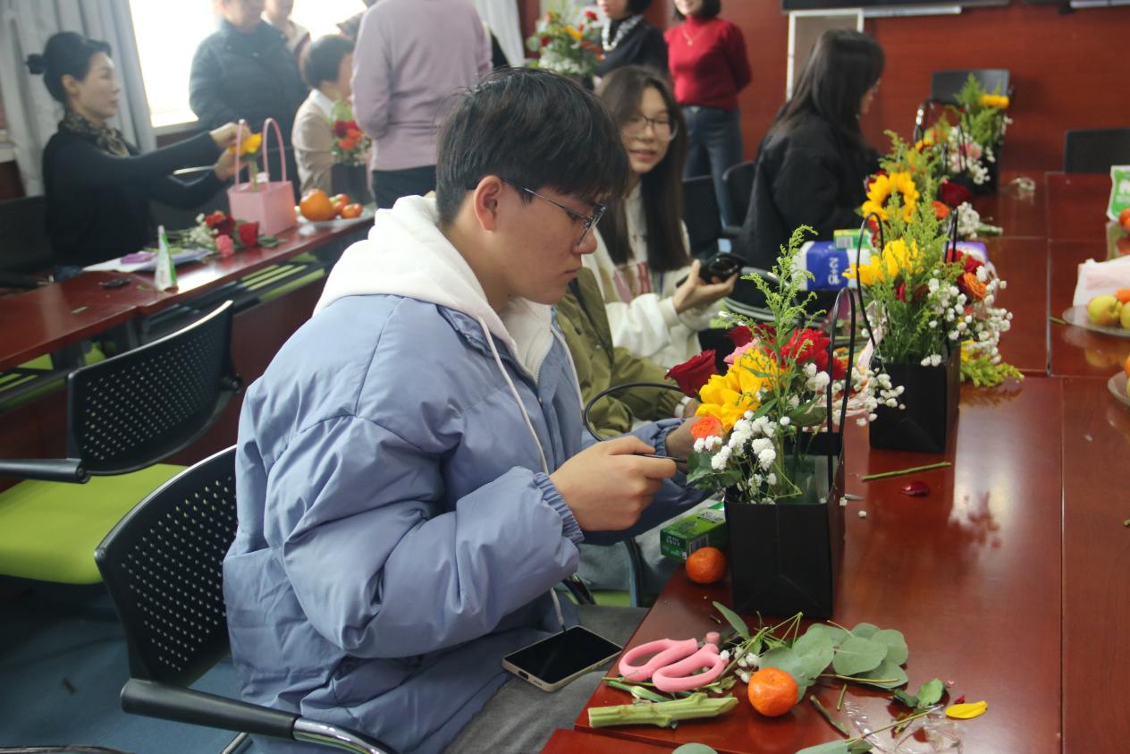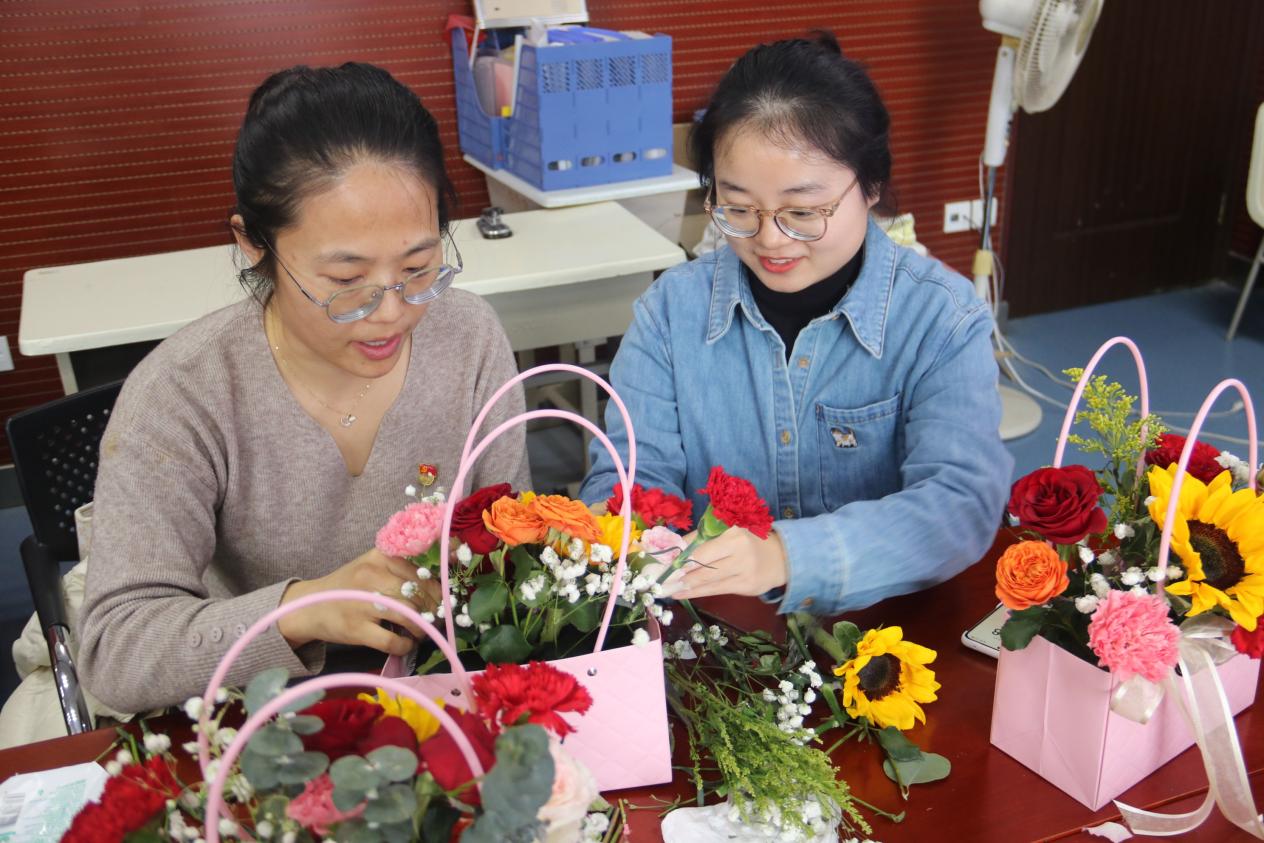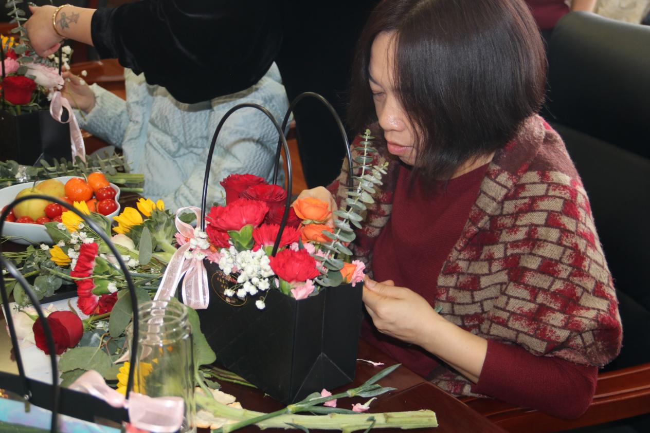 万紫千红总是春”创意插花活动,结亲师生发挥创意,在花香中协作交流,以花为笔、以叶为墨,共同描绘出民族团结的美好图景,象征着各民族如繁花般紧密相依。此次活动以花为媒,不仅为女教职工送上节日祝福,更凝聚了师生力量,助力学院发展与民族团结事业。